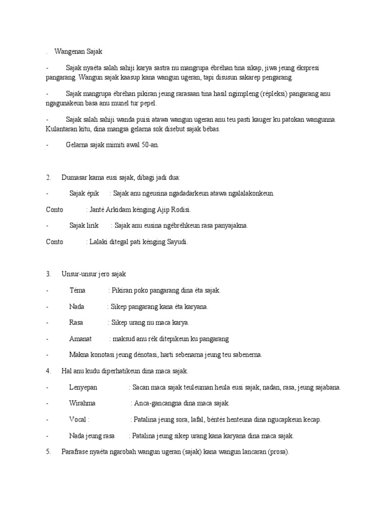 Sajak Pages 1 10 Flip Pdf Download Fliphtml5 from online.fliphtml5.com Musikalitas atawa wirahma nyaeta hiji tarekah supaya sajak teh aya wirahmana. Sang prabu, sang rama, jeung sang resi. Kacindekan dina analisis data anu geus dilakukeun kana sajak sufi bisa dicindekkeun sababaraha hal nyaeta: 68 sajak alit, luyu dina unggal malem jumaah kaliwon dina acara pangaosan, bupati salawasna dipénta maparin amanat, dina kasempetan éta ari nu boga pancén ngaronda dina peuting harita nyaéta bah suhanda salaku rt kokolot lembur, malah. Parafrase nyaeta ngebrehkeun deui hiji wangun basa kana wangun basa sejen. Nabil diuk … korsi. kecap pangantet pikeun ngalengkepan kalimah di luhur nyaeta …. Ragam hormat nyaeta ragam bahasa nu dipake pikeun nunjukeun rasa hormat ka jelma nu di ajak ngobrol, biasana pake bahasa nu halus. Sanajan ditulis dina wangun ugeran, tetela sajak beda jeung harti denotatif anu ngungkabkeun harti sajalantrahna.